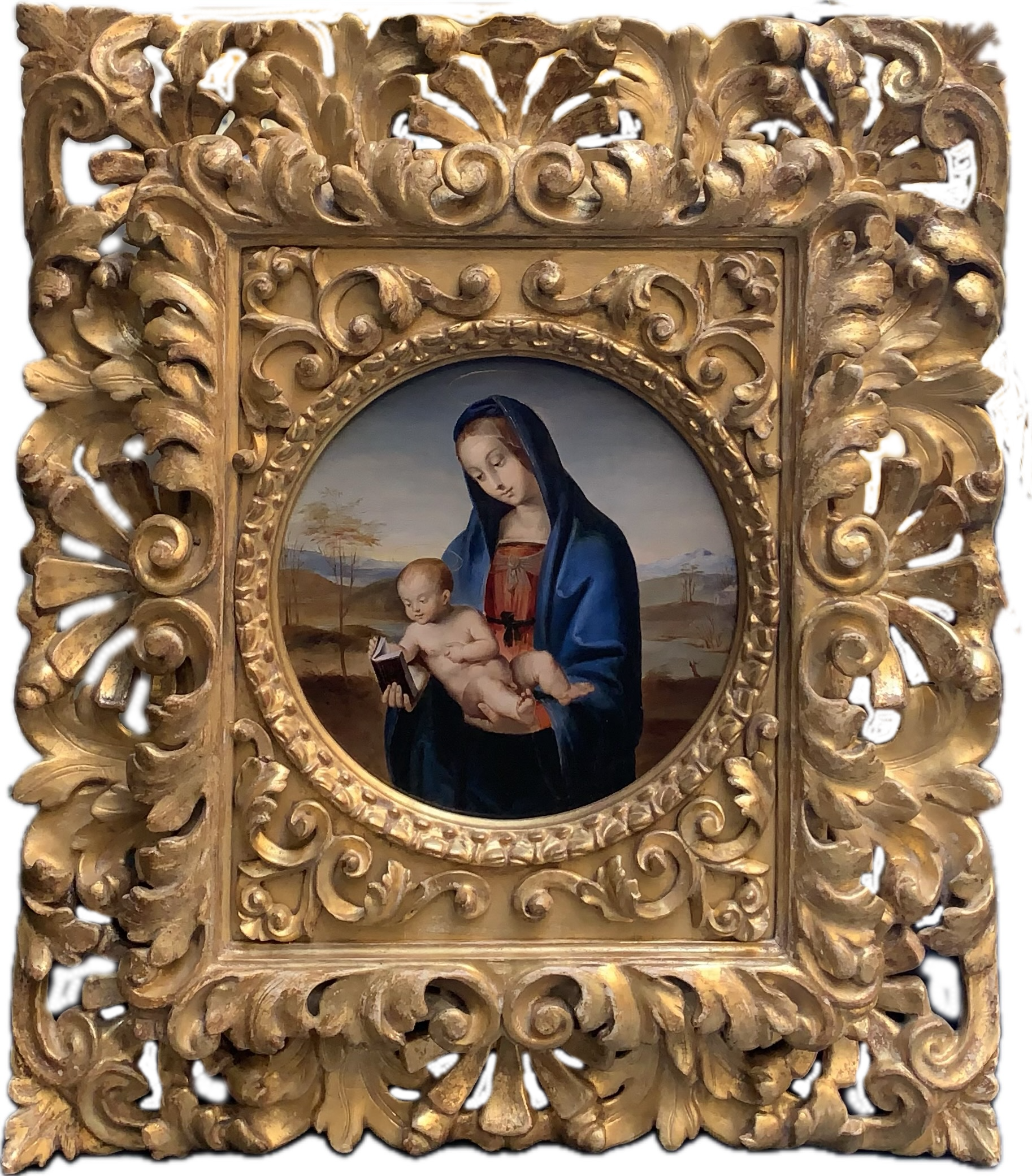 Made in compositional likeness to Raphael’s last painting, Conestabile Madonna, now held in the Hermitage Museum of St Petersburg, the work was originally painted for the Conestabile Della Staffa family of Perugia before it was then gifted to the Russian Tzaress, Maria Alexandrovna in 1871.