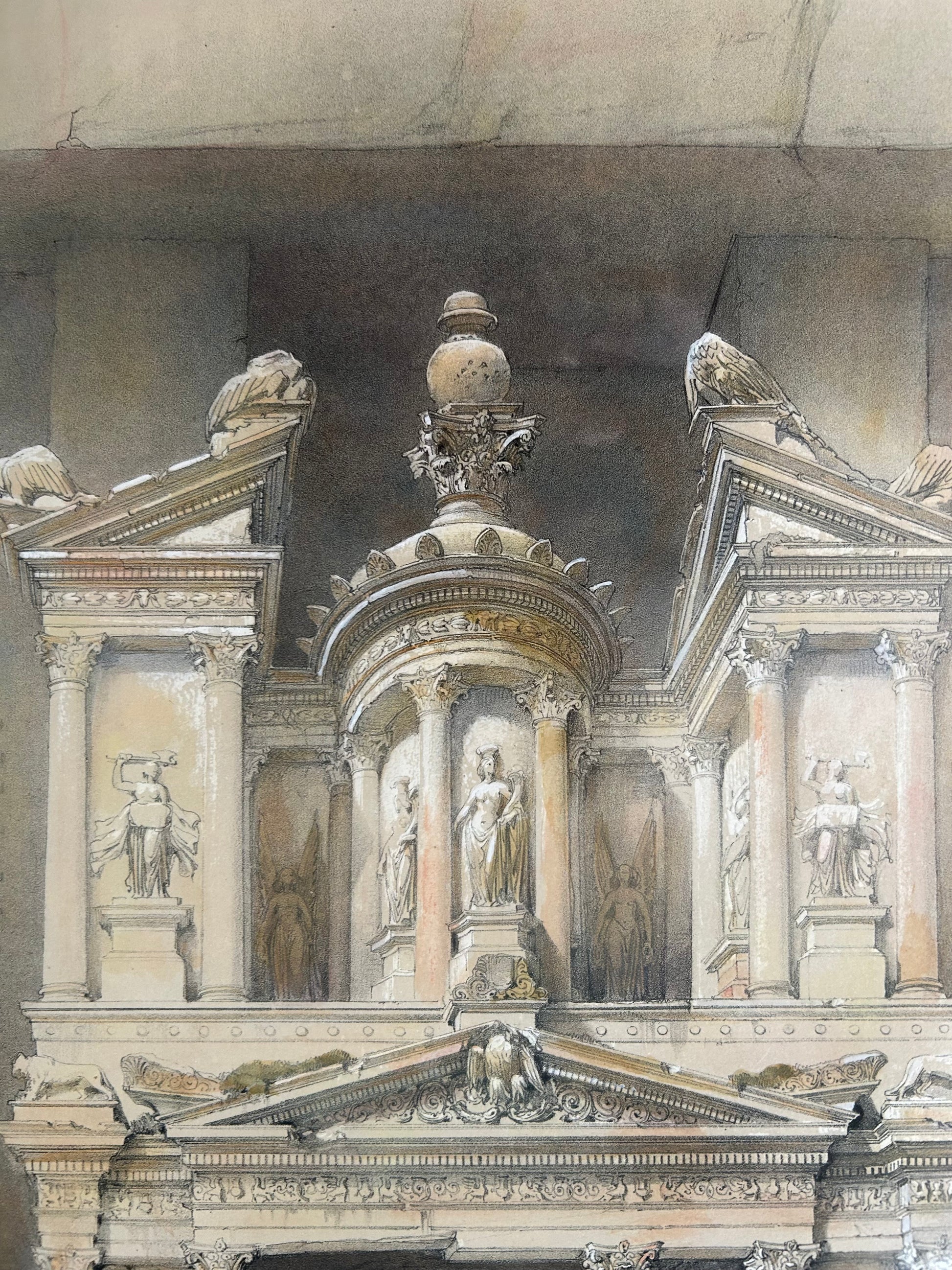 This exceptional monument was the first that Roberts and his party explored at Petra and he noted in his journal ‘I cannot say whether I was most surprised at the building or its extraordinary position. It stands, as it were, in an immense niche in the rock and the fine colour of the stone and perfect preservation of the minute details, give it the appearance of having been recently finished.’
