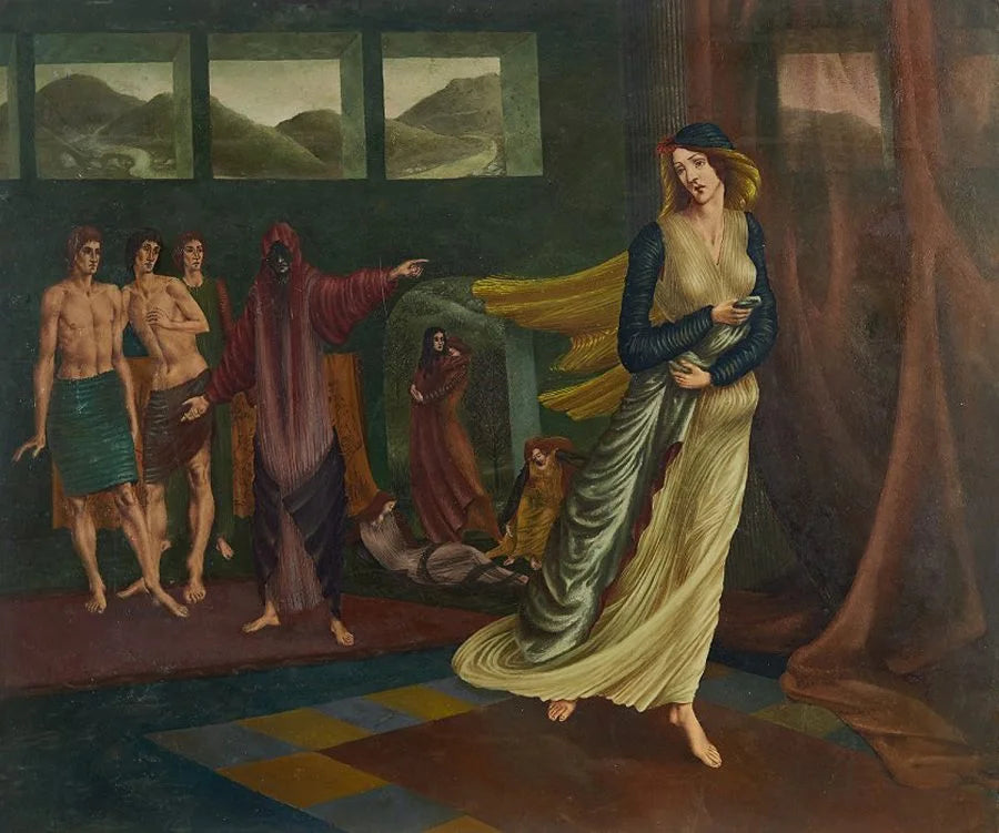 In 1975 a one man show of his landscape and figure paintings entitled To be Born Again was moved from a gallery in Middlesbrough to the Alywn Gallery in Mayfair and was followed some years later by an exhibition at The Minories in Colchester.Plummer specialised in the medium of egg tempera, a technique little used since the frescos of the Renaissance, he often worked on a large scale, but in tremendous detail, combining Classical iconography and formal composition with visual exploration evocative of William Blake and Stanley Spencer.