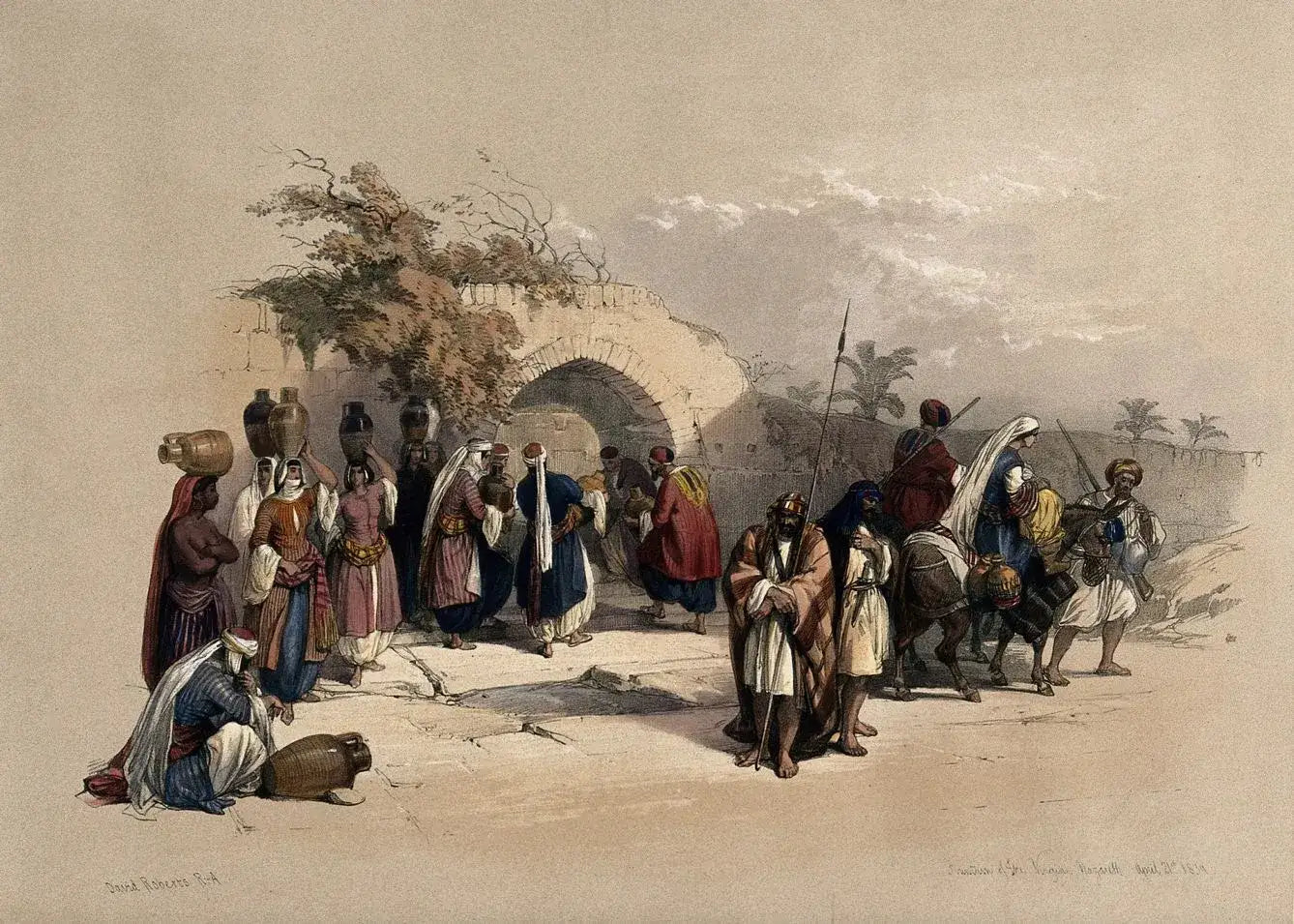 Modern hand-coloured lithograph for the first edition of David Roberts' The Holy Land.