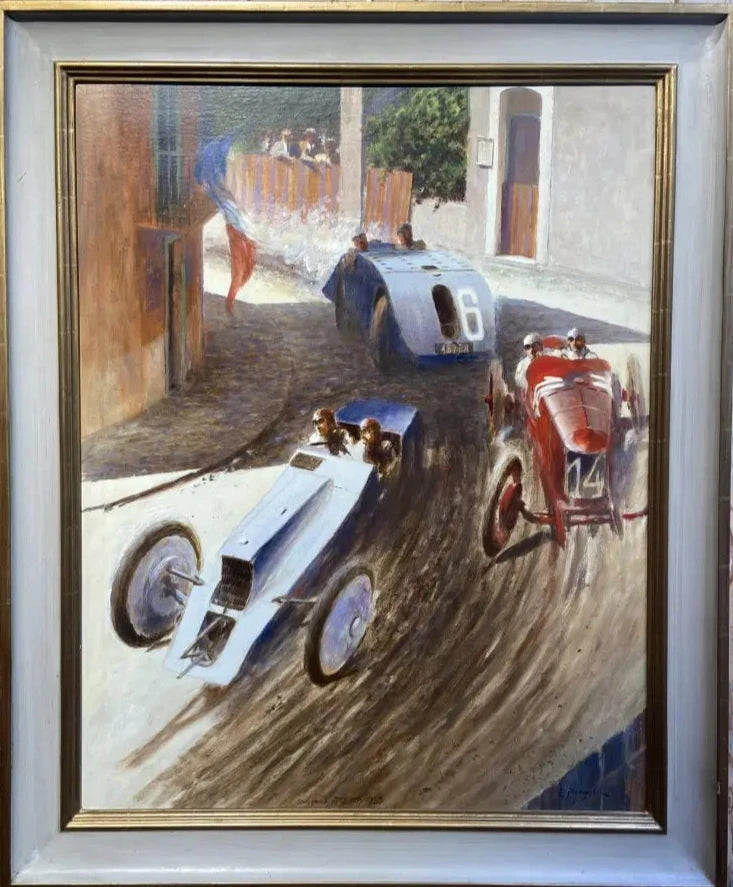 This painting depicts the 1923 French Grand Prix, held at Tours on 2 July 2023.