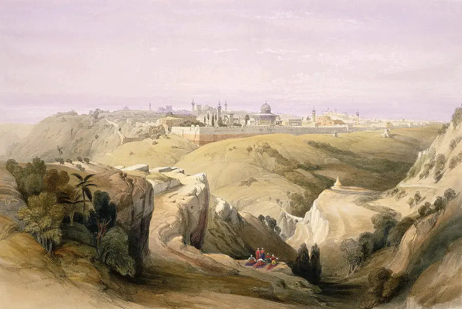 Jerusalem lies near the summit of a broad mountain ridge. This ridge, which is everywhere not less than from twenty to twenty-five miles broad, is in fact a high irregular table land. The surface of the elevated promontory on which the city stands sinks somewhat steeply towards the east, terminating in the Valley of Jehoshaphat.
