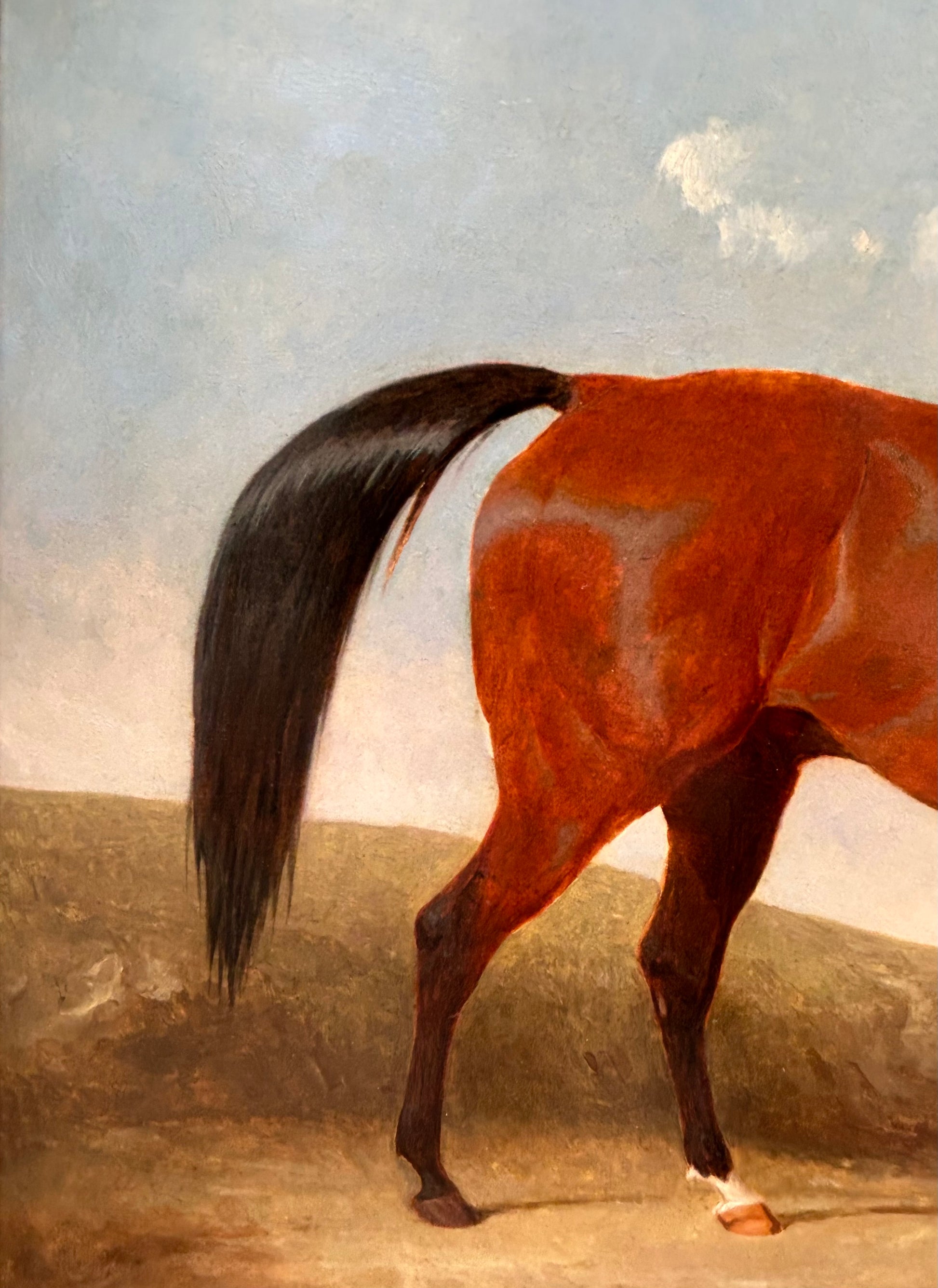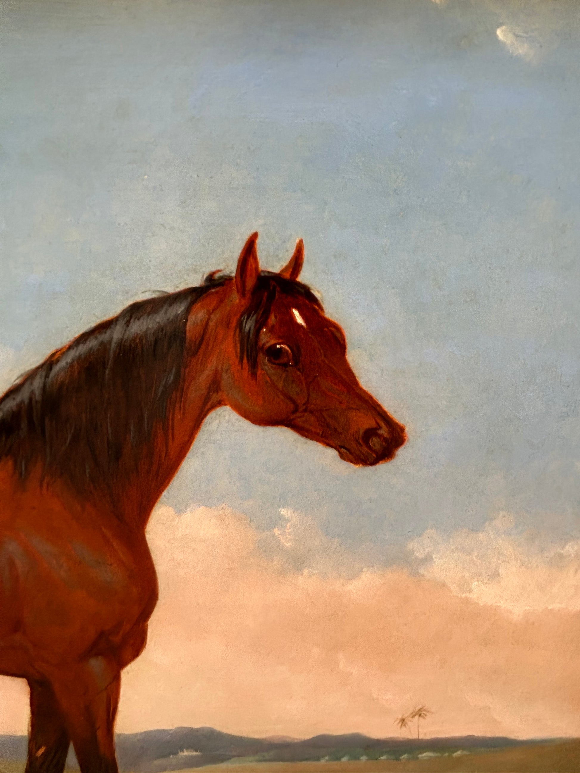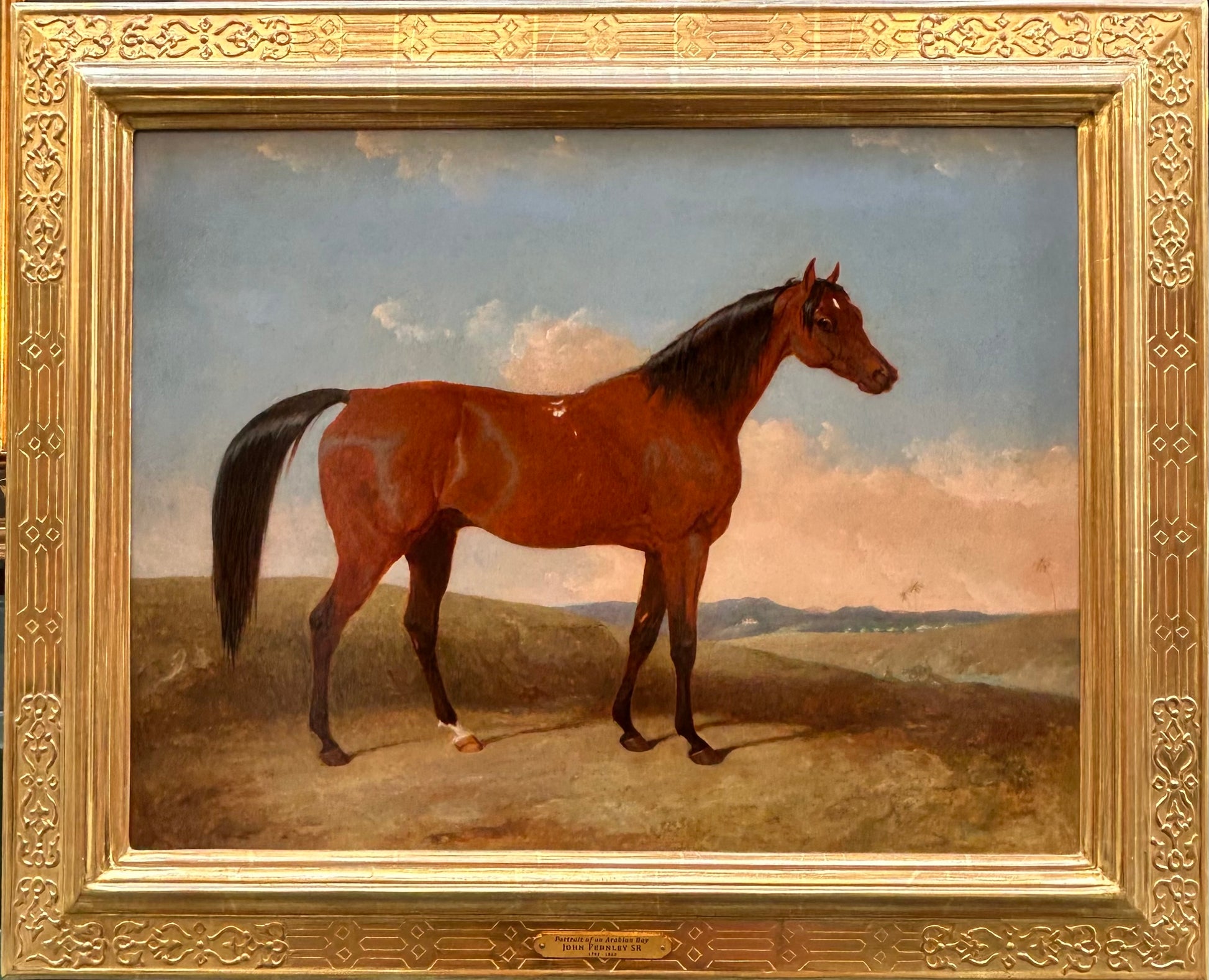 With the rise of horse sporting in 18 and 19th century England, Arabian horses were also introduced into the breeding stock of racehorses. They form the heritage of the modern Thoroughbred breed, a British breed developed purely for success in racing. Ferneley’s painting tracks this multifaceted history of the Arabian horse in England, and the variety of ventures that they were prized for - from military conflict, to the hobby of racing.