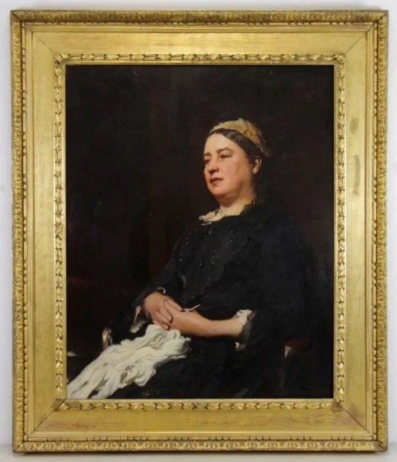 The sitter of this compelling portrait is Miss Tonks, the sister of W. H. Tonks and Edmund Tonks. The entire family was painted by the artist Frank Holl, one after another in the early 1880s. The portrait of Edmund Tonks is currently in the collection at The Birmingham Museums Trust. This portrait of Miss Tonks, along with a portrait of W. H. Tonk’s wife, were the first women portraits attempted by Holl and were only carried out at the express wish and earnest persuasion of Mr Tonks himself, one of Holl’s loyal patrons.