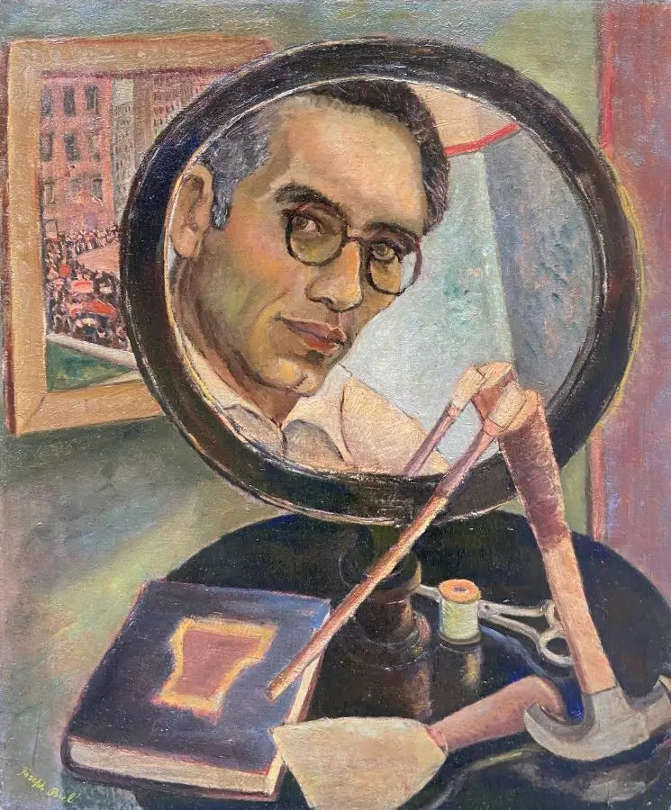 Biel was employed by the Public Works Art Project in 1934, his painting “Angles of New York” City assigned to the office of New York Borough President and “On the Ferry” to the Commissioner of Docks. As Lena Gurr later recalled, “Joseph Biel was always a conscious social painter. He couldn’t be otherwise, for, after witnessing a pogrom and other social ills in his youth in Grodno, Poland (later Russia) he was burning with hatred for oppression of all kinds… He believed that painting was the best weapon an artist had to express his inner thoughts and feelings, and that the artist should use that weapon to expose social injustice”.
