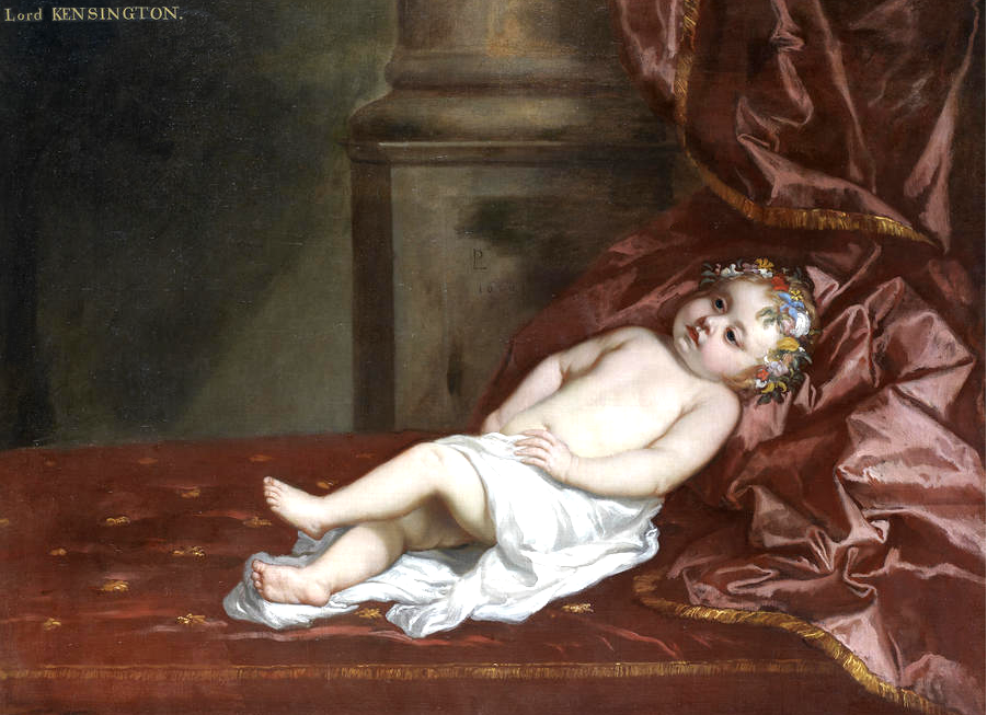 The identification of the sitter as Lord Kensington appears erroneous. Lely painted a three-quarter-length portrait of Henry Rich, to be 2nd Lord Kensington (1642-1659) as a young man,circa1658 (Berkeley Castle). The present portrait of an infant, painted in 1656, is therefore unlikely to show the 2nd Lord Kensington (who would have been fourteen years old at the time) or his father, Robert Rich, Earl of Warwick, Baron Rich and Baron Kensington (c.1620-c.1680).