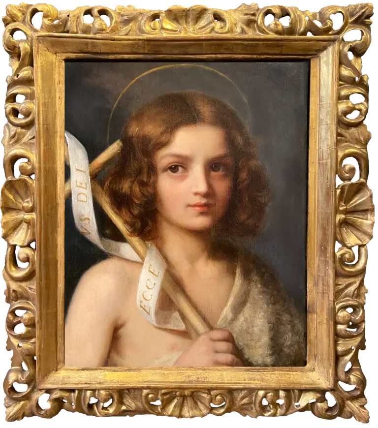 This is a beautiful early 19th Century Italian Old Master oil painting with the subject matter of Saint John the Baptist as a very young child. The tender detail in the face and the palette of soft warm tones makes this a staggeringly beautiful oil painting.