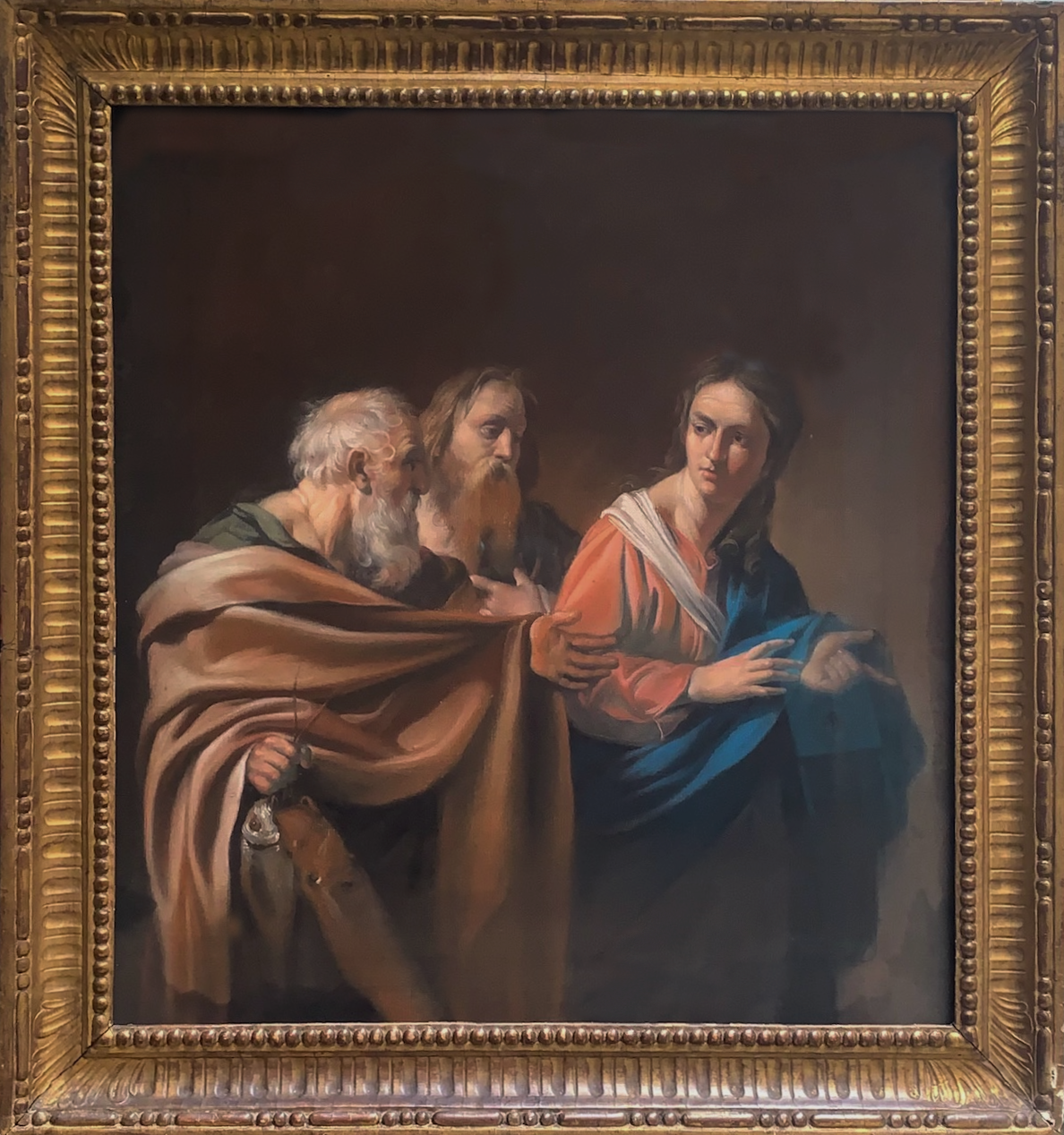 We would like to give credit to Neil Jeffares and Lucy Whitaker for their contributions in attributing the work to Robert Edge Pine and their analysis of the work as a copy of Carravaggio's original.