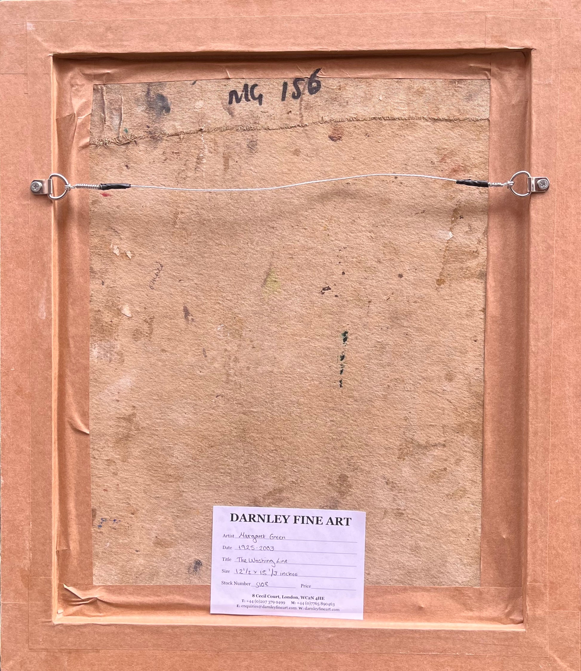 Green was a highly successful student at the Royal College of Art, where she was taught by Ruskin Spear and Carel Wright. During her studies, Green won plenty of awards and prizes for her art. One such prize was a travelling scholarship around France and Ireland, an undertaking that she completed with fellow artist Lionel Bulmer, whom she had met at the Royal College and who would later become her husband. The two moved to Chelsea after the war, painting images of everyday postwar life in London. Both artists took up supplementary jobs as teachers in art schools, with Green working between an art school in Walthamstow and the Royal Academy schools.